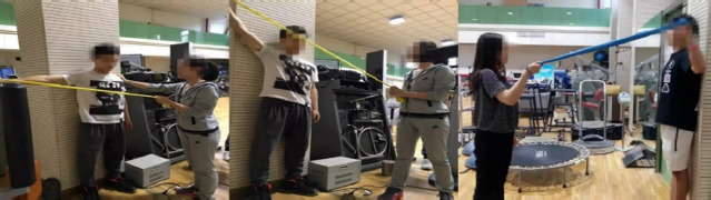 The inclusion criteria were as follows: (1) athletes of national level 2 or higher, with at least 10 years of training experience, who had achieved third place or higher in regional competitions, participated in training at least three times per week, and employed a right-handed forehand topspin for fast-attack and loop combination plays; (2) table tennis players with positive results in the scapular assistance test (SAT), the scapular retraction test (SRT), and scapular dyskinesis tests (SDTs) (Pires and Camargo, 2018) with no symptoms; (3) all participants had a clear understanding of the purpose of the experiment and potential risks, volunteered to participate, and signed informed consent forms. The exclusion criteria for participants were as follows: a history of shoulder dislocation, previous surgery on the shoulder, back or neck in the past six months, symptoms of neck or back dysfunction, scapular fractures, scapular dysfunction caused by central or peripheral nerve injury, and other injuries or illnesses preventing from participation in this study.
