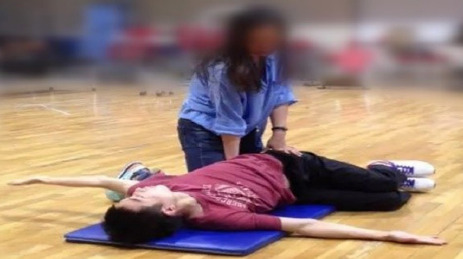 Participants lay on one side with their hips and knees flexed at 90°, their shoulders flexed at 90°, and their arms extended. Then, the arm rotated across the body, involving thoracic spine movement (Figure 4).