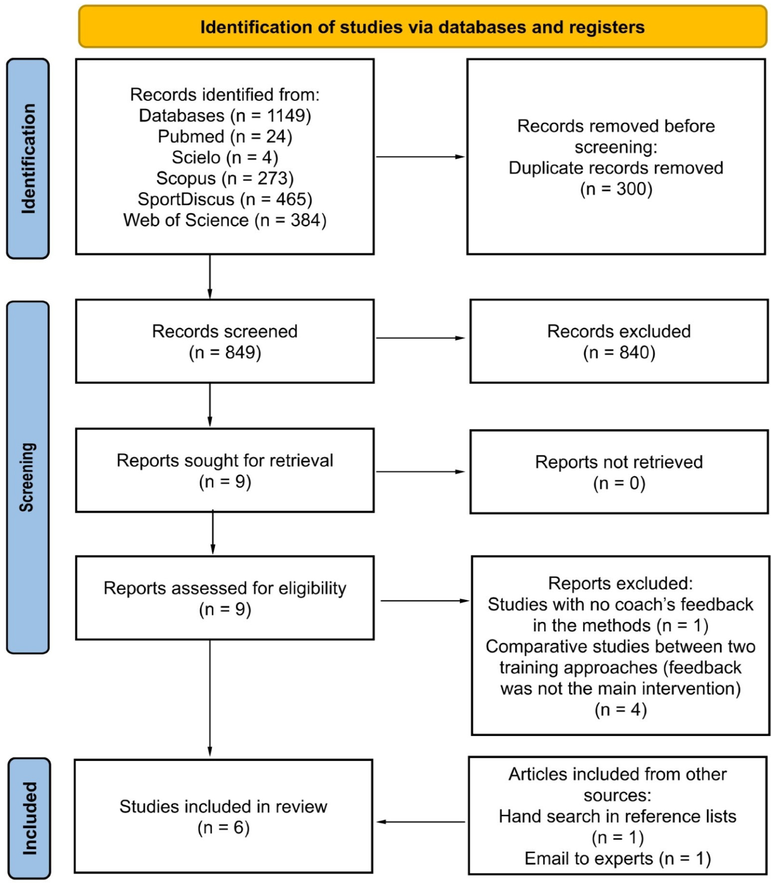 Among strategies used by coaches in the training environment, feedback appears as a common coach practice. Regarding the collective characteristics of soccer, it is important to observe the game in the same scale. In the coaching process, players’ behavior can be constrained by coaches using feedback. This study aimed to investigate the role of feedback, performed by coaches, on the tactical behavior of soccer players. We searched in five databases: Scopus, Pubmed, Scielo, SportDiscus and Web of Science, following PRISMA-P guidelines. The PICOS strategy was used to establish eligibility criteria. Only quantitative studies written in English and published in peer reviewed journals were included. From the 1,149 articles found in the initial search, six were included in the review, and then were evaluated considering their methodological quality and risk of bias, through the quality index and the Joanna Briggs Institute (JBI) critical appraisal tools, respectively. Papers presented high heterogeneity regarding methods to apply feedback interventions and to assess the players’ tactical behavior. Differences were observed in the task proposed to players, varying from small-sided games to official size games (3 vs. 3 to 11 vs. 11). Despite these differences, similarities could be found regarding the use of notational analysis in half of the papers, and analysis through positional data in the other half. The use of instructional constraints before the game seems to bring more clarity on how to better coordinate collective actions, causing a positive effect on players’ tactical behavior.